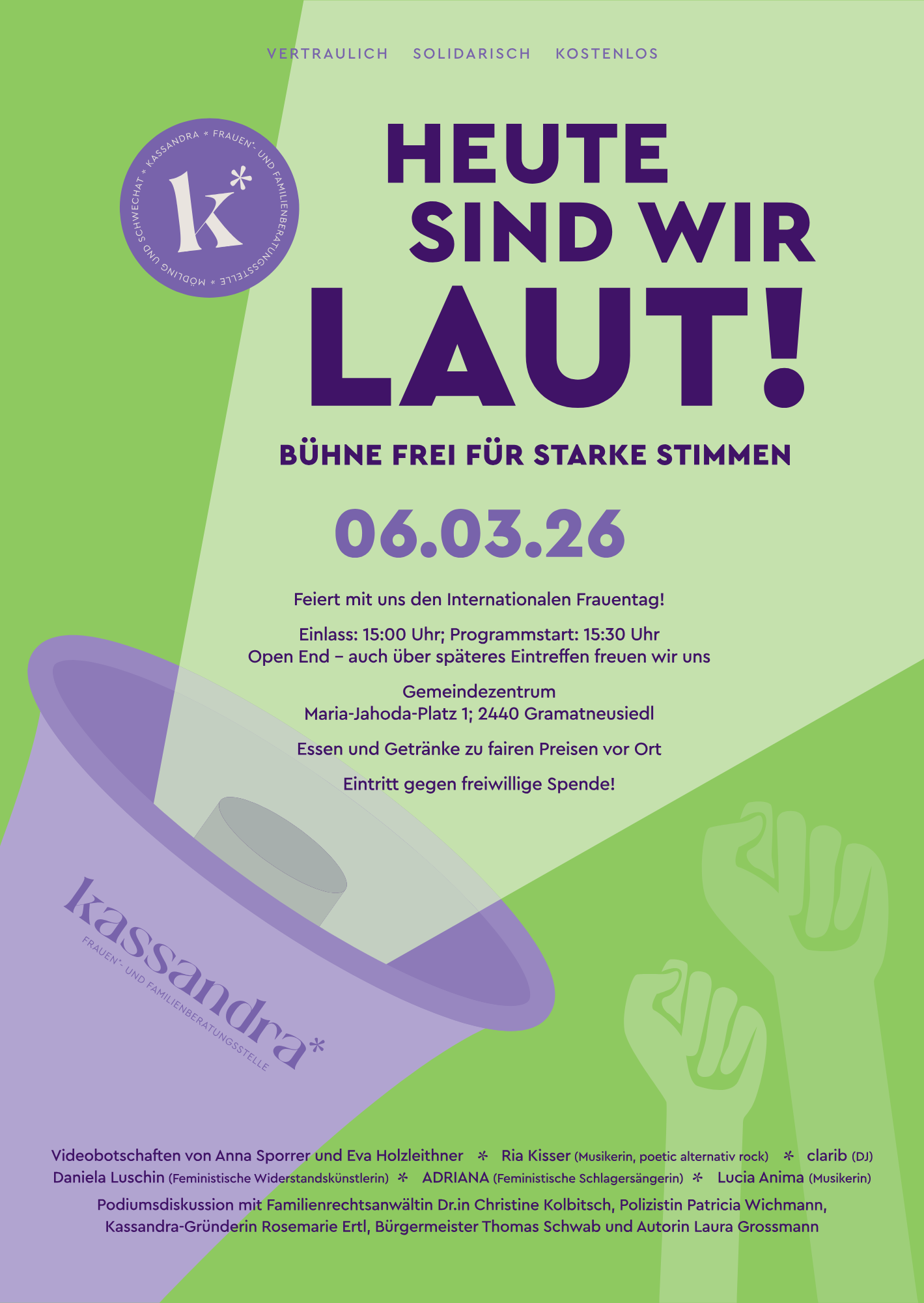 Feiert mit uns den internationalen Frauentag am 06.03.2026 im Gemeindezentrum Gramatneusiedl!